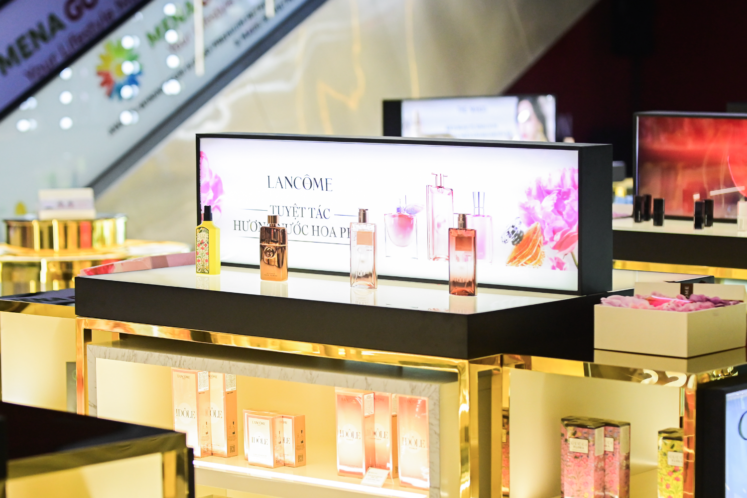 Located on Level 1 of Menas Mall Saigon Airport, Mena Cosmetics & Perfumes represents a strategic expansion of Menas Group into the premium cosmetics and fragrance retail segment. Designed as a dedicated luxury retail space, the store offers a refined shopping experience with sophisticated visual merchandising, clearly separated from the supermarket area. Its prime location at the gateway of Tan Son Nhat Airport enables direct access to high-end consumers, including local residents, business travelers, and international visitors.